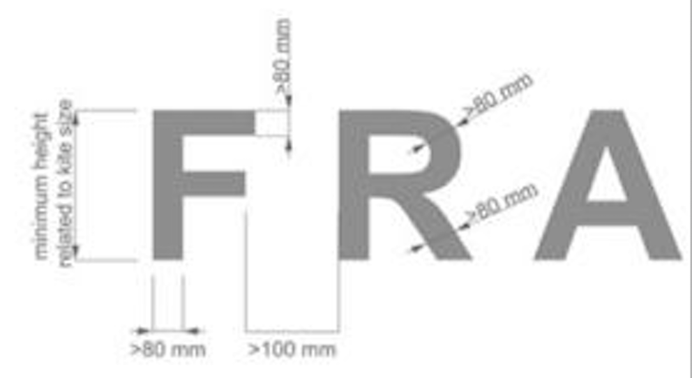 Kite size range | Minimum height | Minimum stroke width | Minimum space between characters |